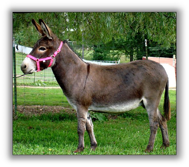 ![]() ![]() ![]() ![]() Photos below taken July 12th, 2008, after winning a very competitive color class showing against all sizes of donkeys. She also won the three and over ACOSA Jennets class. ![]() ![]() (Click photos to enlarge) | ||||||||||||||||||||